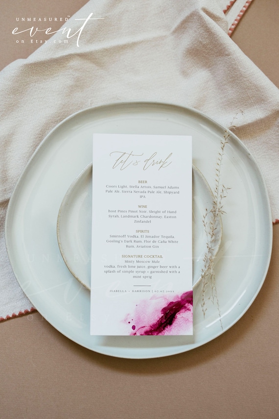 Colette Drink Menu Template Printable Menu Cards Fuchsia Etsy